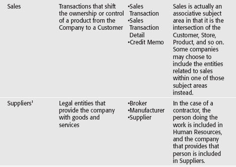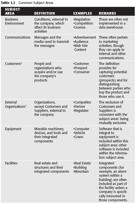 Un data warehouse está organizado por temas (subject areas), de manera que es natural que la metodología para un modelo de data warehouse empiece por el subject area model. 2.5.1 Temas comunes en muchos contextos