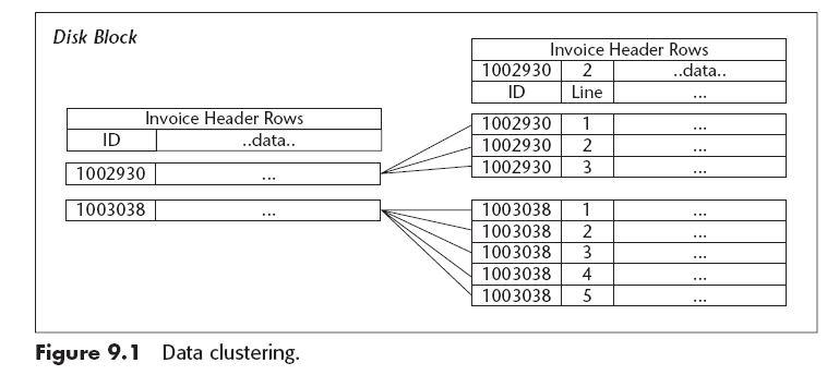 6.2.2.2 Optimizing the DatabaseData Clustering Involucra colocar tuplas relacionadas de distintas tablas dentro del mismo bloque de disco, de esta manera los joins se hacen rápidamente.