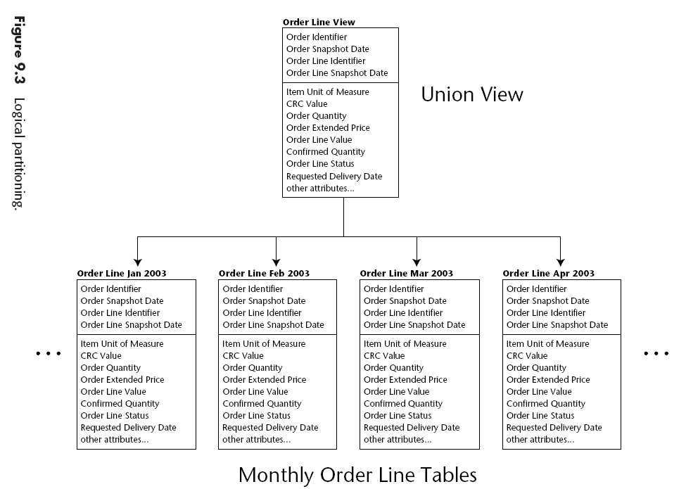 Table Partitioning Conocido también como "horizontal partitioning", divide una tabla en muchas subtablas con las mismas columnas. La división puede hacerse por algun criterio ej. Años, Ciudades, etc. Las particiones pueden ser físicas o lógicas. Existen 2 razones básicas para particionar tablas: