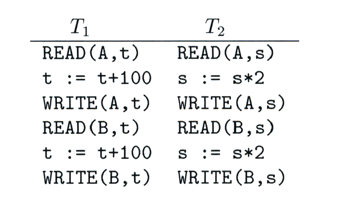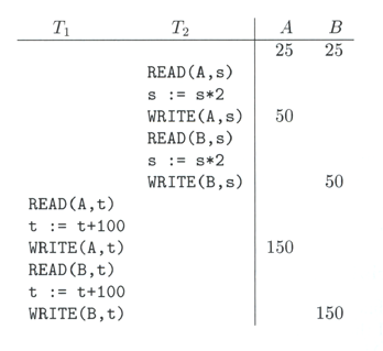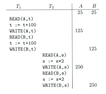 10.3.2 Serial SchedulesUn schedule se considera "serial" si sus acciones consisten de todas las acciones de una transacción, seguidas de todas las de otra transacción y así sucesivamente sin mezclas de ninpún tipo.