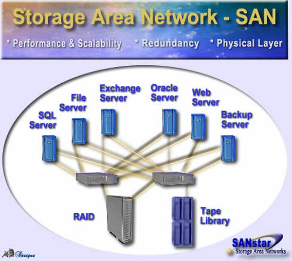 Red dedicada creada para permitir a un grupo de servidores el compartir sistemas de almacenamiento de alta velocidad