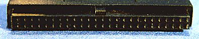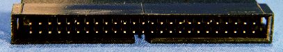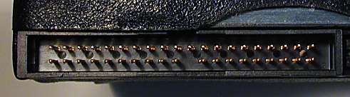 Un conector IDE/ATA en un disco (arriba) y un cable regular de 40 conductores IDE/ATA cable (abajo).
