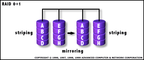 - Es un arreglo de clases (stripes), cada una de ellas compuesta por un arreglo de discos con RAID1