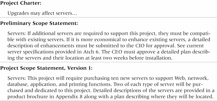Mientras el tiempo progresa, el alcance del proyecto debe llegar a ser mucho más claro y más específico.