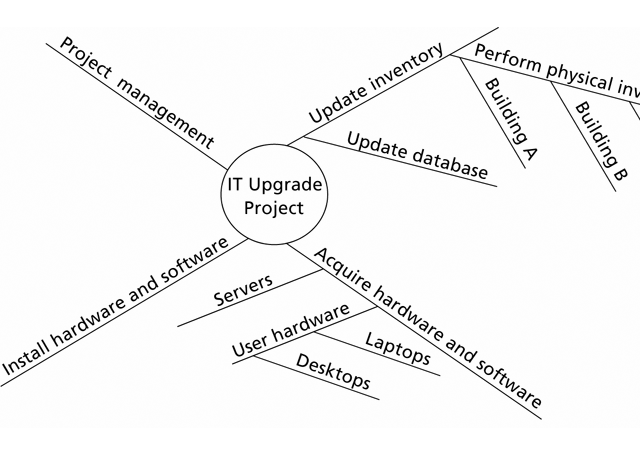 • Mind-mapping approach: escribir tareas en una manera no-lineal, a través de ramas y entonces crear la estructura de WBS.