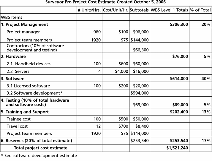 Un gran porcentaje de los costos del proyecto son a menudo los costos "laborables", de manera que los project managers deben desarrollar y dar seguimiento a estimaciones por "labor".