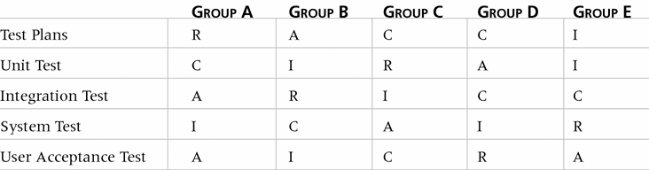 Sample RACI Chart (Responsability,Accountability,Consultation and Informed roles)