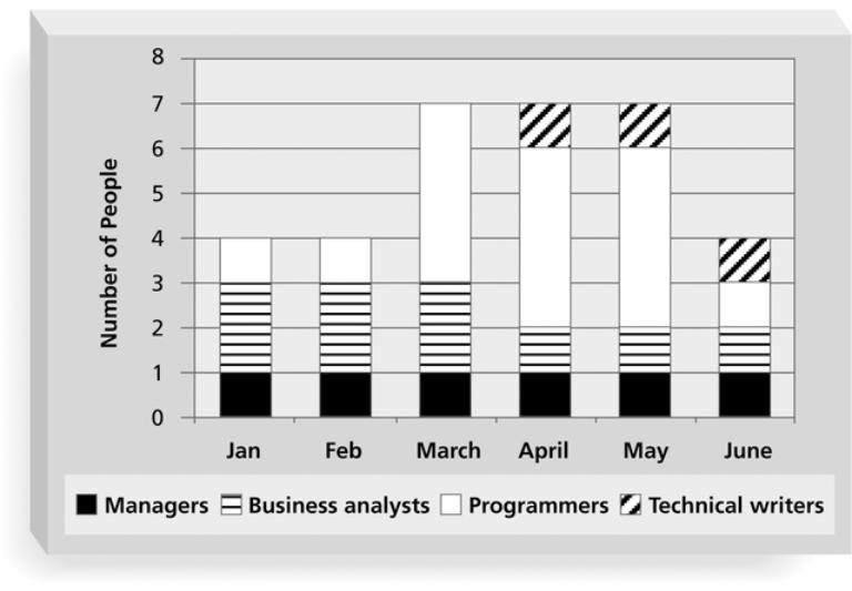 Staffing Management Plans and Resource Histograms Un staffing management plan describe cuándo y cómo las personas entrarán y saldrán de la participación del equipo proyecto. Un resource histogram es una gráfica de barras que muestra el número de recursos asignados a los largo del tiempo.