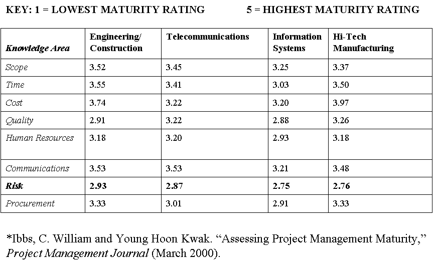Project Management Maturity by Industry Group and Knowledge Area