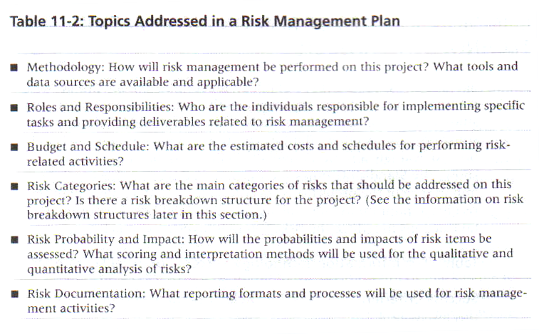 Topics Addressed in a Risk Management Plan