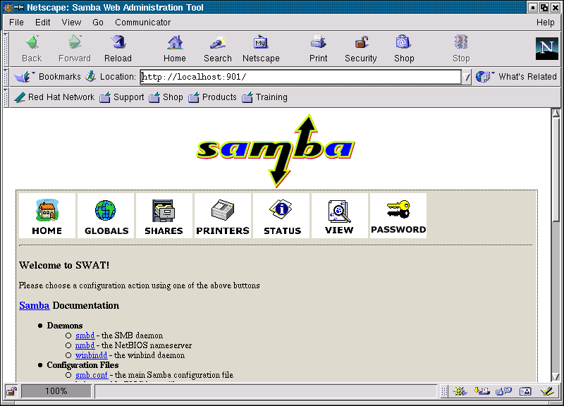 Interfaz web de administración Swat , (normalmente en el puerto 901)