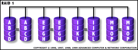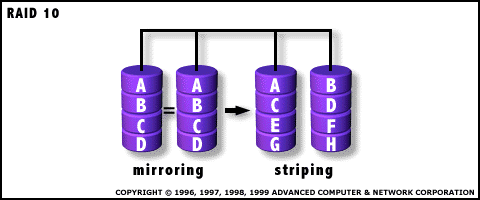 - Es un arreglo de clases (stripes), cada una de ellas compuesta por un arreglo de discos con RAID1