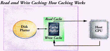 - Cuando se leer algo del disco lo más reciente se almacena en esta cache de manera que cuando se hace otra llamada al disco ésta se intercepta y se revisa si los datos se encuentran en el buffer de memoria, si es así los datos se utilizan de ésta y no del disco.